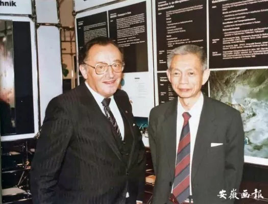 大哥汤卫城(右),上世纪 80 年代为中国驻联邦德国大使馆科技参赞,图为访问联邦德国航天航空