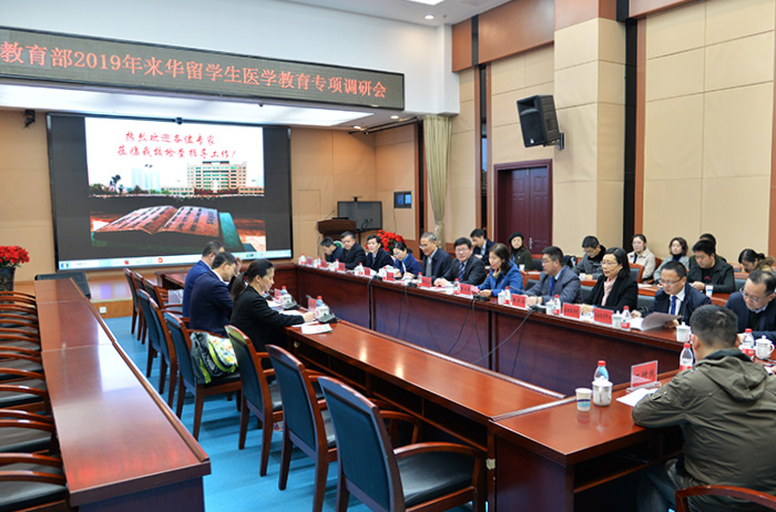 12月12日,教育部来华留学生医学教育专项调研组一行3人来我校,就来华留学生医学教育工作开展专项调研和工作指导。校党委书记顾家山出席会议并致欢迎辞,校长曹云霞主持会议,副校长余永强作工作汇报。