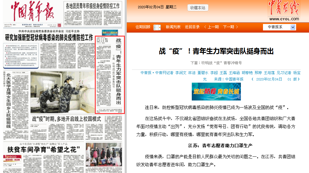 中国青年报:战“疫”!青年生力军突击队挺身而出