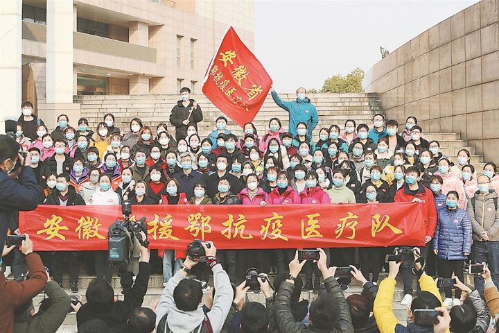 2月4日下午,我省援鄂第二批抗疫医疗队在安徽医学高等专科学校集结,于当晚乘火车驰援武汉。
