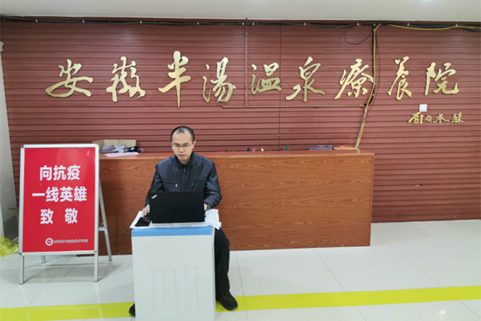 2月23日,刚刚结束蚌埠疫情支援工作的王苒再一次给教育处打来电话,兴奋地说:“我到半汤疗养院隔离了,可以给学生上课了!”由于疗养院条件有限,为避免影响其他同事休息,王苒借用同事的电脑,在宿舍楼大厅,以床头柜为桌开始了线上直播教学。教学过程中,他将诊治新型冠状病毒肺炎的相关知识及时传授给学生,也用自己的亲身经历向学生们诉说了在这次残酷的疫情中,广大医护人员勇于担当、舍生忘死、不畏艰难、迎难而上的现实案例,希望这种精神在这群未来的医生中一直传承下去。言传身教的教学在学生中引起广泛的共鸣,也极大地激发了大家奋发图强的学习热情。