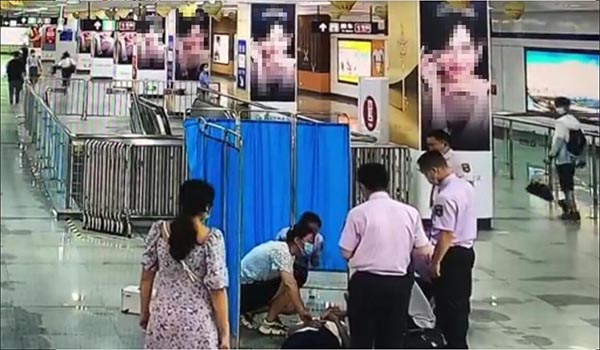 老人地铁站晕倒 安医大一附院护士紧急施救。图片由安医大一附院提供