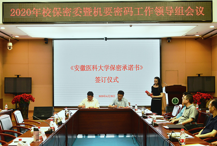 顾家山代表校保密委,就进一步提高思想认识,采取有力措施,全面加强学校保密工作提出四个方面的意见。一要充分肯定成绩,在组织体系建设、宣传教育、制度建设、硬件建设等方面认真总结学校保密工作;二要把握形势任务,切实增强做好新时代保密工作的责任感使命感;三要坚持问题导向,着力解决保密工作重点领域和关键环节的突出问题;四是紧扣年度工作要点,切实提高我校保密工作水平。他强调,保密工作是学校工作的重要组成部分,是不可逾越的底线、不可触碰的红线,要按照中央和省委的严格要求,认真履行保密工作责任制,思想上重视,制度上健全,措施上得力,为建设高水平医科大学、促进学校各项事业健康发展作出新的贡献。