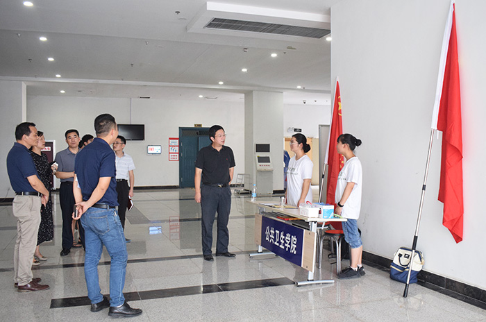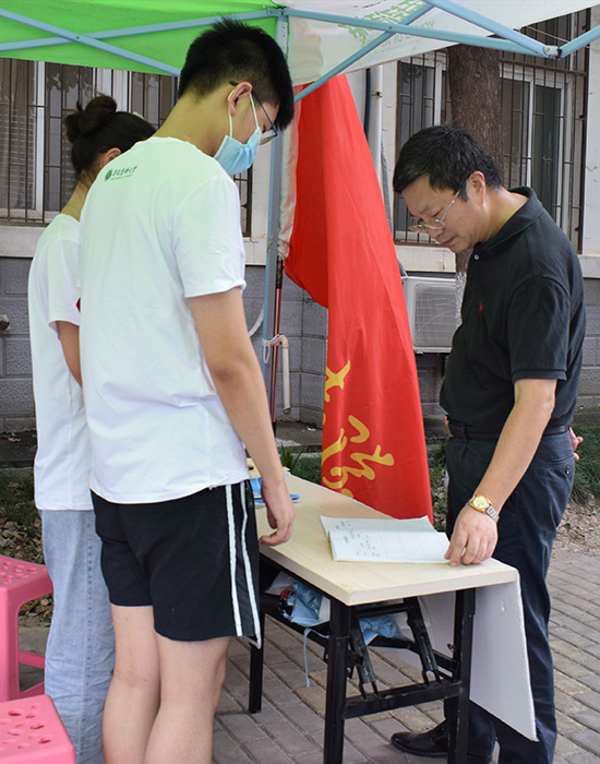8月19日上午,校党委副书记刘群英一行,到校本部北门、西食堂、老图书馆北门、力行楼南侧围墙、水湖路东侧、校园东北角围墙等区域,亲切看望坚守在岗的校园疫情防控青年突击队队员。