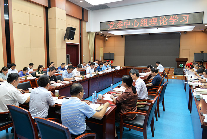 8月20日下午,学校召开党委中心组理论学习会,校党委中心组组长、校党委书记顾家山主持会议。校领导曹云霞、刘群英、余永强、肖圣龙、吕雄文、黄新美及校党委中心组全体成员参加会议。