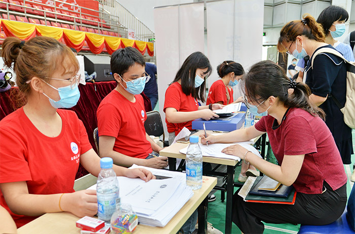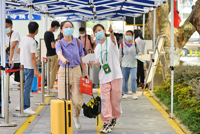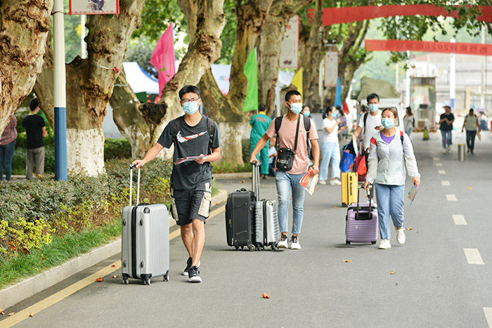 为加强人性化关怀、提升服务水平,学校组织了大量志愿者帮助新生进行行李物品消毒、搬运行李等,并通过发放“开学第一餐”补助,提供口罩、体温计、消毒凝胶等防疫物资,开辟新生缴费绿色通道等多项贴心举措,让研究生新生切实感受到常态化疫情防控期间来自学校的温暖。