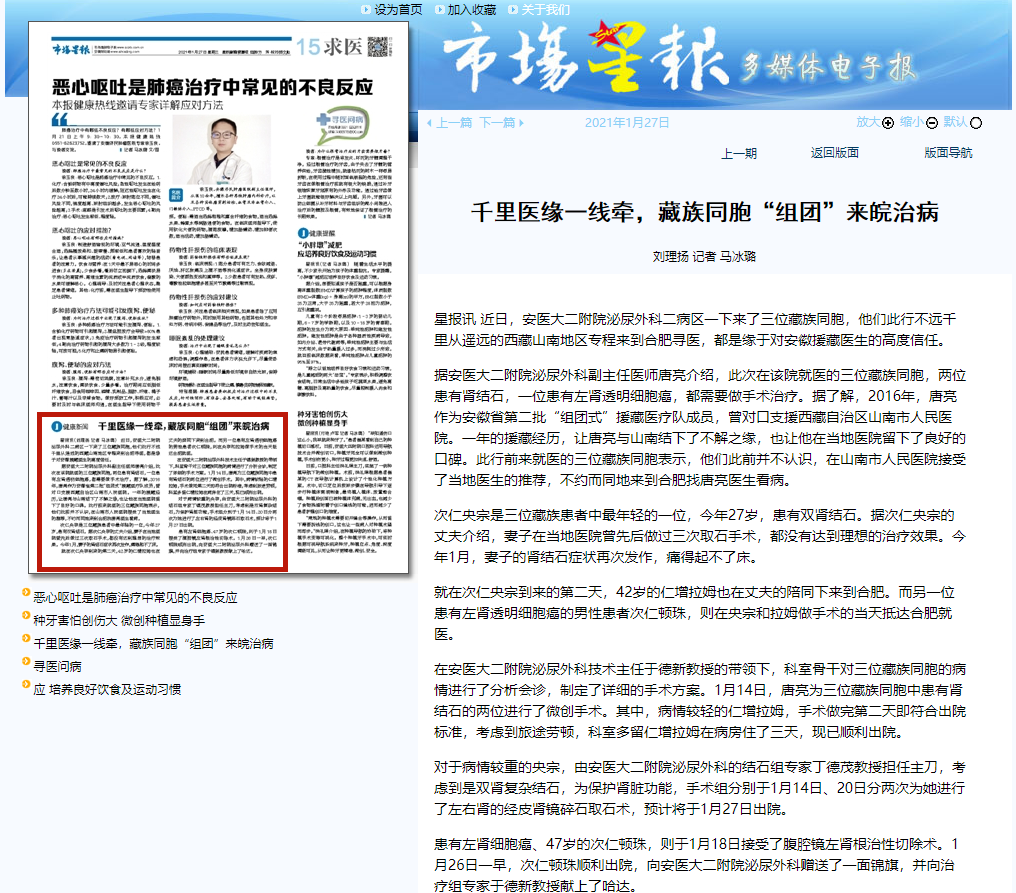 市场星报、合肥晚报:千里医缘一线牵,藏族同胞“组团”来皖治病