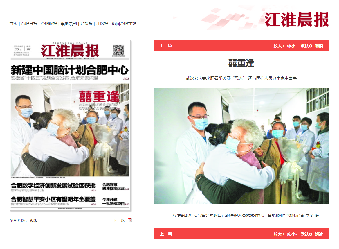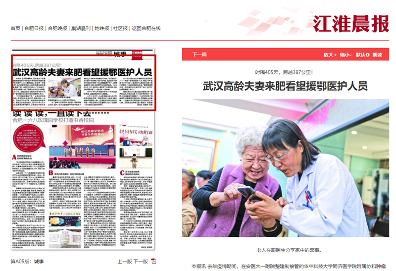 江淮晨报:武汉高龄夫妻来肥看望援鄂医护人员