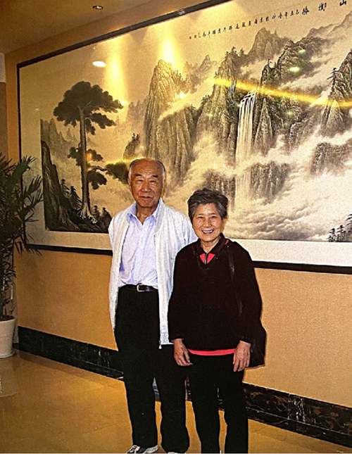 走进浦老家的客厅,一幅高山流水、意境深邃的水墨画立刻吸引了我们。图画中远处山峰巍峨,近处树木青翠茂盛,参天松柏栩栩如生,一片宁静壮美的江山风景尽展眼前。浦老爱人黄景秀老人告诉我们,画上的山就是她老家的后山,画上的路就在老宅的屋后。