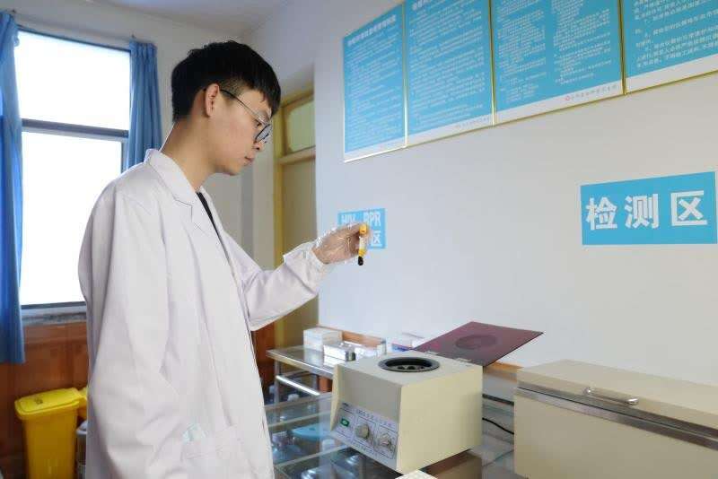 每个早晨,曹纲会早早来到科室做准备工作。除了消毒、开仪器、加试剂,还要给门诊、住院的病人抽血化验。在这所卫生院,检验工作仅由他和科室主任两人负责。