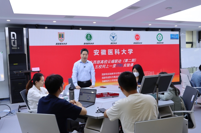 6月1日上午,我校与浙江大学、南京医科大学、新疆医科大学和西安医学院共同发起了“东西部云端联动,五校同上一堂iTBL(integrated team-based learning) 实验课”的线上教学活动,来自五所高校140余师生共同完成线上互动教学。课前,五校相关领导分别致辞。