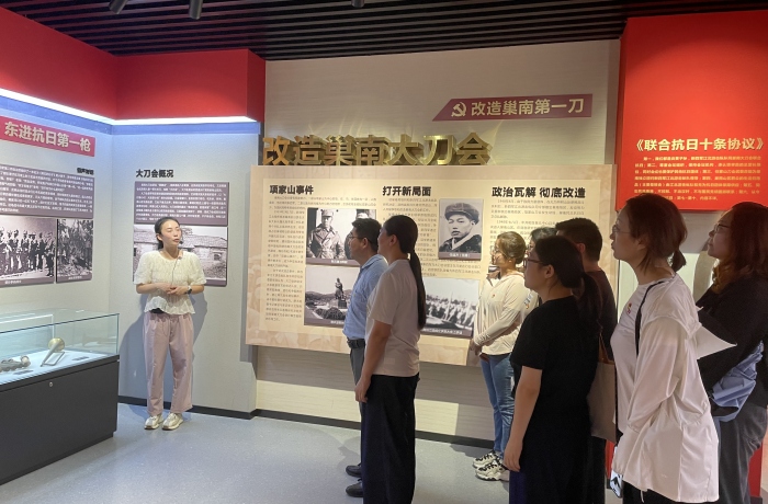 在三胜村新四军东进抗日第一枪纪念馆,一张张老旧的照片、一页页泛黄的纸张、一件件珍贵的实物、一个个还原的场景,生动展示了新四军第4支队在蒋家河口进行的伏击战战况。广大党员了解了当年新四军东进抗日首战歼敌告捷的光辉事迹,重温了那段艰苦卓绝、荡气回肠的峥嵘岁月,深切感受到老一辈共产党人“敢于斗争、敢于胜利”的革命精神。