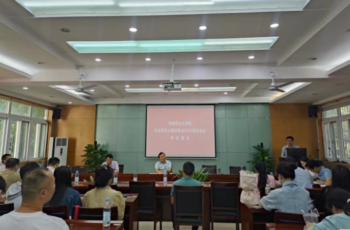 6月28日上午,马克思主义学院2023届研究生毕业典礼在该院一楼会议室举行。该院领导班子成员出席会议,院学位分委员会成员、各学科点负责人、导师代表、2023届全体研究生参加典礼。