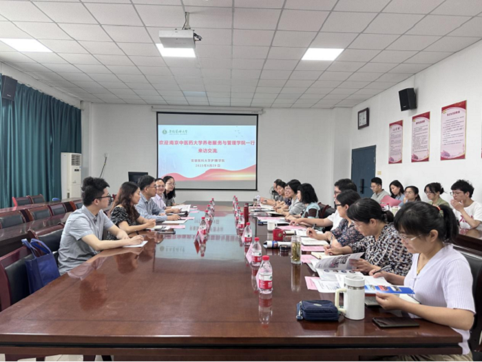 6月29日,南京中医药大学养老服务与管理学院执行院长田侃、副院长卢圣锋一行,来我校护理学院开展新专业建设交流。护理学院院长洪静芳,院党委副书记王磊,副院长赵梅、李树雯出席交流会。