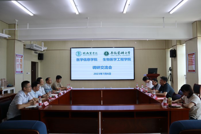 7月6日,皖南医学院医学信息学院副院长叶明全一行来我校东校区,与生物医学工程学院就专业和学科建设等调研交流。生物医学工程学院党委书记白亮亮、执行院长钱海生出席交流会,副院长杨飞主持会议。