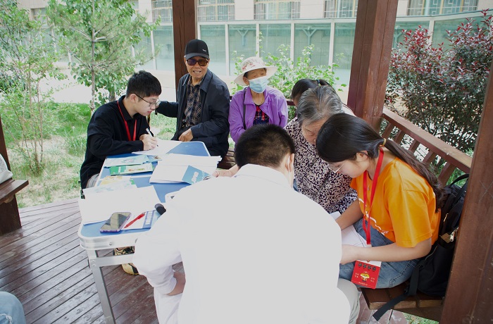 凝聚青春力量,卫护老人健康。青海大学公共卫生系作为我校“一拖一”结对共建单位,部分师生和我校实践队员一起来到古城台区各小区为老年人开展了为期4天的义诊和健康科普,并对老年人进行问卷调查。调研结束后,青海大学公共卫生系师生与实践队员开展了交流座谈。会上,该系系主任王兆芬对实践团成员的实践成果表示肯定,并希望以此为契机,进一步加强两校公共卫生学院(系)互动研讨,为结对共建持续注入新的活力。