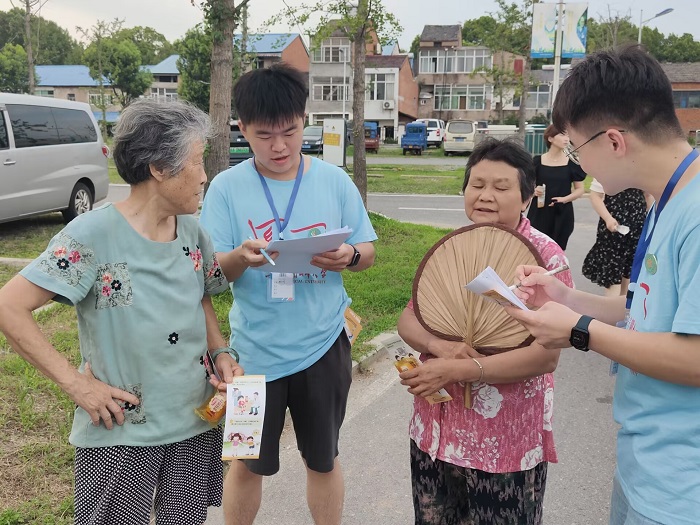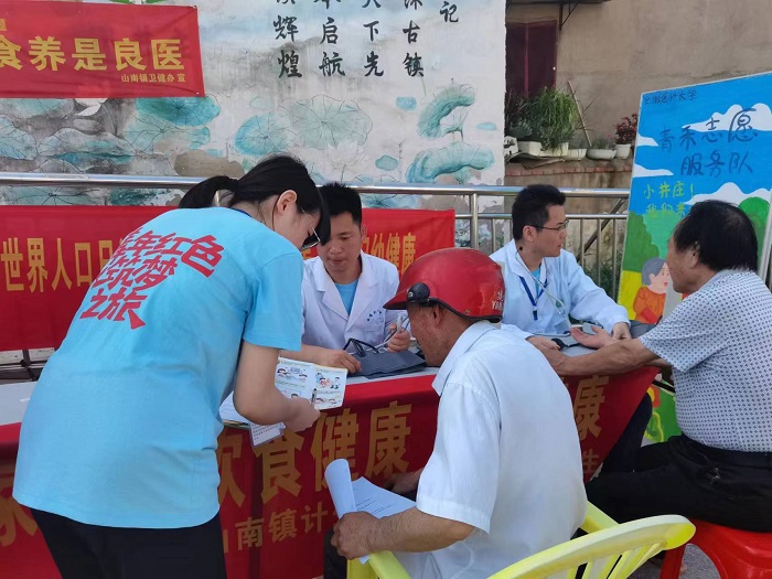 炎炎夏日义诊行,浓浓真情润人心。在肥西县山南镇浮顶山广场,实践队员为老人们测量血压,为儿童进行视力检查。对于老人们提出的相关疾病问题耐心解答,并给出饮食、运动、作息等方面的建议。队员们还开展“一对一”科普宣讲,向居民科普结核病防治知识,为居民的健康保驾护航。