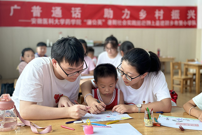 “蒲公英”暑期社会实践团来到颍上县开展留守儿童帮扶和心理健康调研活动,前往建颍乡希望小学和八里河尤湖希望小学,围绕“价值引领”“生命护航”“普通话推广”等主题,设计启智润心、防溺水体验、急救知识科普、校园文明礼仪、情绪管理小课堂系列的课程。该实践团也是学校唯一一支入选教育部2023年“推普助力乡村振兴”全国大学生暑期社会实践志愿服务活动的团队。