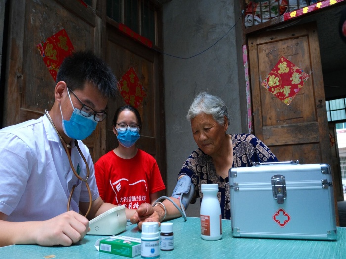 安医学子显才干,医助民生促健康。在王家坝镇卫生院,实践团与医务工作者走村入户,为当地群众普及健康知识,并为崔集村的老人们提供健康服务。在王家坝中心学校,成员们还向当地学生操作了如何正确实施心肺复苏法以及海姆立克急救法等,并展示了黄梅戏和太极拳,将我校的“人人习练新六艺”素质教育品牌带入课堂,为孩子们提供了“七彩假期”。