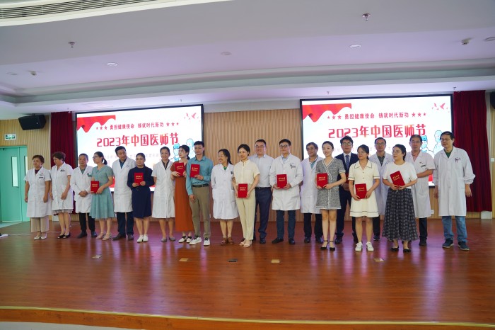 该院党委书记戴晓支代表院党委向辛勤工作在临床一线、为守护百姓生命健康日夜奋斗的医师们致以节日的问候,并向默默支持医院工作的医师家属们表示衷心的感谢。他希望全体医师要持续强化职业意识,树牢职业精神,不忘初心,真正做到“有时去治愈、常常去帮助、总是去安慰”。要躬耕不辍、求索不息,努力学习前沿知识,不断提升专业能力,除患者之病痛,助健康之完美。要坚定信心、齐心协力、攻坚克难,让个人价值在医院高质量发展中得到升华。他同时表示,全院各部门、各科室要为医师成长成材提供良好平台,为百姓就医提供良好的环境,以全院之力为每一位医务工作者谋长足发展。