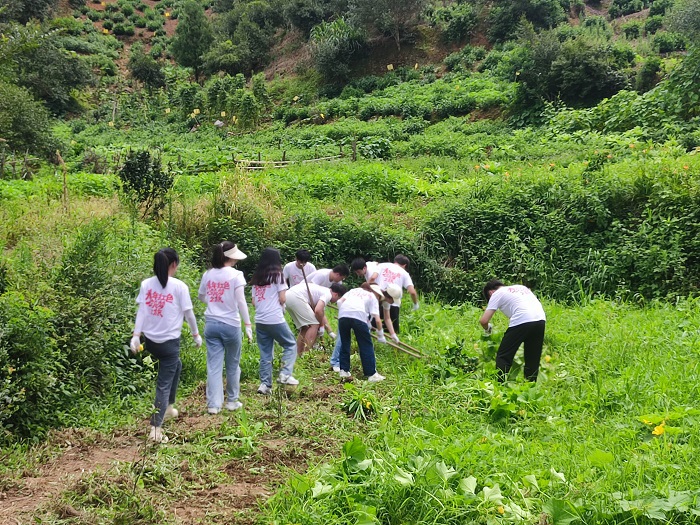 在专业人员的指导下,实践团成员们来到汤口镇冈村的田间地头,进行农田耕作、杂草清除、农产品收割等工作,亲身感受劳动的艰辛与乐趣。夏日炎炎,成员们三人一组,分工协作,扛着锄头,撸起袖子,秉承吃苦耐劳的精神,在农田中挥汗如雨。通过参与农业劳动,大家切身体会到农民的辛勤劳作和对土地的殷切热爱,也真正明白了“一粥一饭当思来之不易”的真谛。