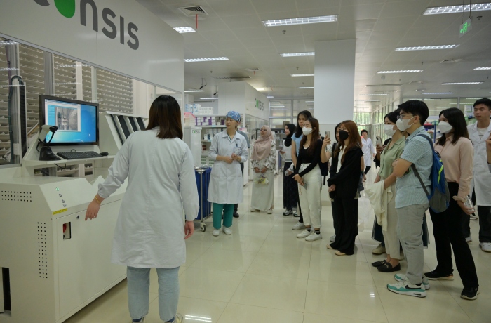 在相关人员引导下,学员们先后参观了我校第一附属医院高新院区门诊自动化药房、检验中心、静配中心、临床技能培训中心等区域,了解了相关科室运行模式、质量控制和安全管理相关做法,学习了该院标准化、规范化、智能化建设先进经验和做法。在临床技能培训中心,学员体验了临床技能训练平台,对医学生的培养过程以及医院生活有了崭新的感受。大家还前往安徽安龙基因生物科技有限公司,参观了临床检验实验室、研发中心及成果展示区,了解该公司检测服务、肿瘤早筛等技术,更加直观感受到中国医药医疗检测企业的发展现状。