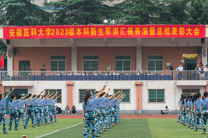 顾家山对2023级本科新生通过两周多的军事训练,磨练出的“敢打敢拼”的军人意志,培养的开拓进取的奋斗激情,收获的团结协作的师生情谊,给予了高度评价。他强调,军训是新生入校后第一堂系统的军事训练课和国防教育课,也是一堂集体主义和爱国主义大课。作为新时代安医人,要传承安医文脉,弘扬校训精神和安医精神,从百年安医的创业历程中汲取精神营养,追逐人生新的目标,不断创造青春新的辉煌。