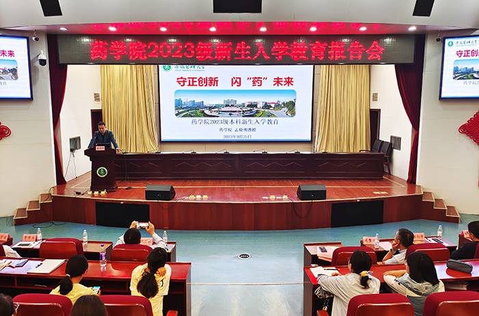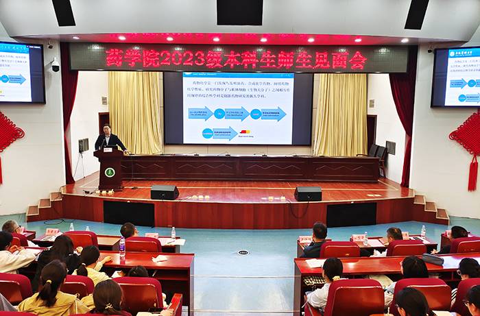 9月25日上午,药学院2023级本科生师生见面会在校本部图书馆第一学术报告厅举行,该院领导班子全体成员、各教研室教师代表及优秀校友参加见面会。