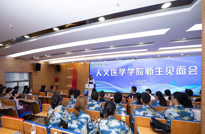 该院各系部室负责人、全体教师、年级辅导员和全体2023级新生参加见面会。(人文医学学院 文/余凌 曹建军 图/余千春)