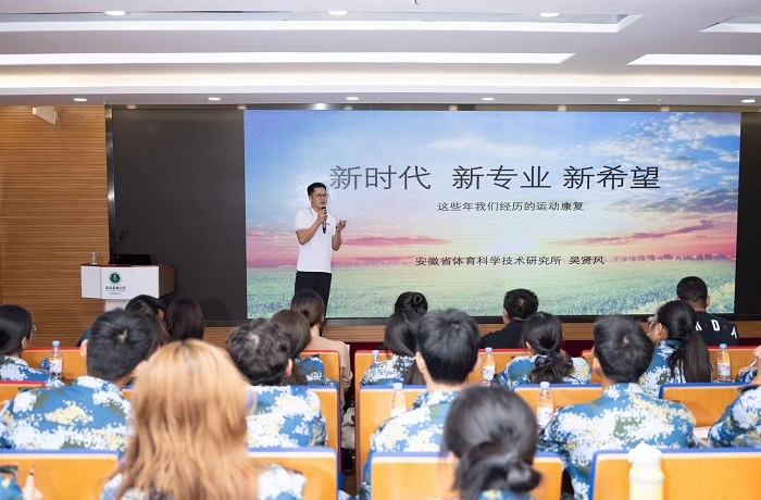吴贤风以《新时代、新专业、新希望——这些年我们经历的运动康复》为题作专场报告,介绍了我国运动康复的发展历程、发展现状和未来的发展趋势,总结了运动康复驱动力和生命力的来源,抛出了对当前运动康复的思考。他建议同学们在未来学习中要注重积累、学习、辩证、融合、创新,学以成人,研以成才。