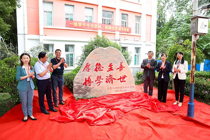为感恩祝福母校,1993届全体校友集体捐赠了一方校园文化石。镌刻着校风“厚德至善、博学济世”的八个大字的文化石,凝聚着广大校友对母校的浓厚情义和美好祝福,也是安医精神的传承与发扬。