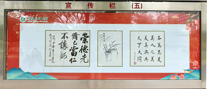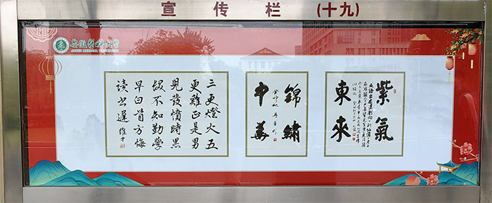 参展作品中既有精彩纷呈的软笔书法,又有赏心悦目的硬笔书法,不仅画种各异,且形式亦别。参展作者中有年逾耄耋的教育前辈,更有坚守教学一线的青年学者。一幅幅精彩的笔墨丹青,也表达出广大教职医护员工燃烧自己、照亮学子的教师情怀,以及仁爱奉献治病救人的医者仁心。书画展形成了校园里一道靓丽的风景线,得到师生的一致好评。