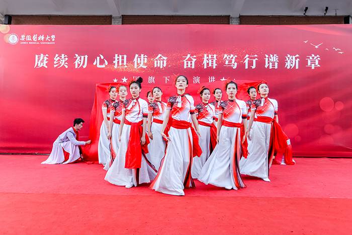 升旗仪式后,药学院学子用跳跃的旋律点燃内心的火热,演绎《我心中的红》,以青春之舞带领全体师生穿越历史的烟云,感受峥嵘岁月的历久弥新,照亮了师生心底那抹最鲜艳的中国红,让红色基因薪火相传,生生不息。