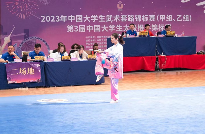 10月7日至11日,由中国大学生体育协会主办,天津市武术协会、天津市武清区体育局承办的2023年中国大学生武术套路锦标赛在天津市举行。我校参赛学生发挥出色斩获3项冠军,获女子甲组团体总分第五名,港澳台学生及留学生共获得8项一等奖。