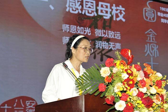 会议由1983届校友王贵松主持。陈莲代表1983届联谊会组委会,感谢母校对本次纪念大会的高度重视和大力支持,表达了对母校的祝福和对老师们的问候。
