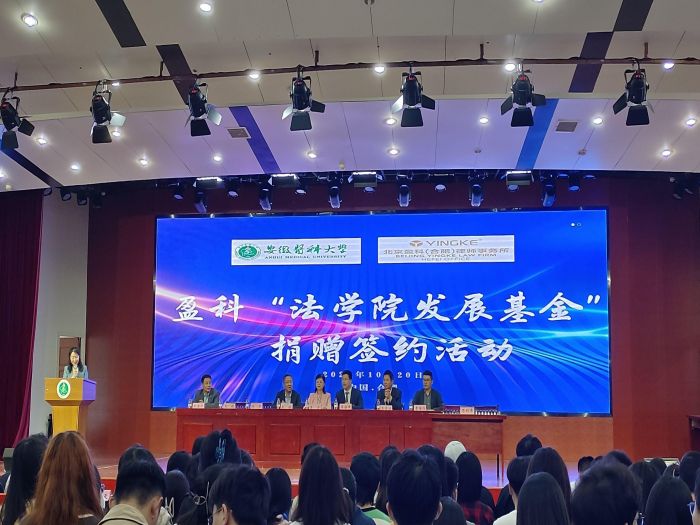袁方代表学校对吴海峰一行表示热烈欢迎,向发起捐赠的盈科律师事务所致以诚挚感谢。她表示,本次捐赠资金将用于支持我校法学院学科发展、学术研究、人才培养等多方面建设,助力学校法学学科全面发展。