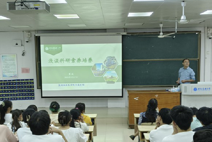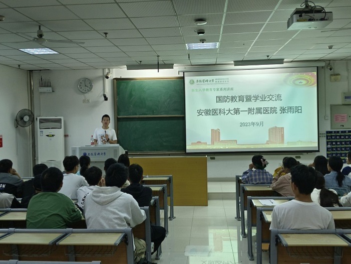 前辈引航绘蓝图。该院邀请专家教授以及优秀学生代表,分别就专业学习、国家安全教育等内容为全体新生作专题辅导讲座。博士生导师袁斌教授结合自己在安医大学习和出国留学的经历,鼓励大家积极参加科技创新类比赛,以拓展视野,提升创新意识。他还结合个人研究领域,分享了生物大数据背景下精准医学的前沿研究成果,激发了同学们参与科研活动的热情。校团委专职团干汪旻旻详细介绍了团组织在日常工作中需要掌握的基本知识和技能,教导新生要听党话、跟党走,树立远大理想,不断提升个人的思想政治素质。我校第一附属医院外科学(泌尿外科方向)专业在读博士生张雨阳结合自己在校学习和参军入伍的经历,鼓励学弟学妹们找准定位、明确方向、踔厉奋发、笃行不怠,同时要提升国防安全意识,增强维护国家安全的责任感和使命感。