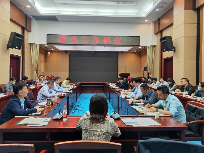 10月30日下午,学校在知行楼一楼会议室召开学生工作例会,部署近期学生教育管理重点工作。会前学习了习近平总书记对宣传思想文化工作重要指示精神。校党委常委、副校长肖圣龙出席会议。