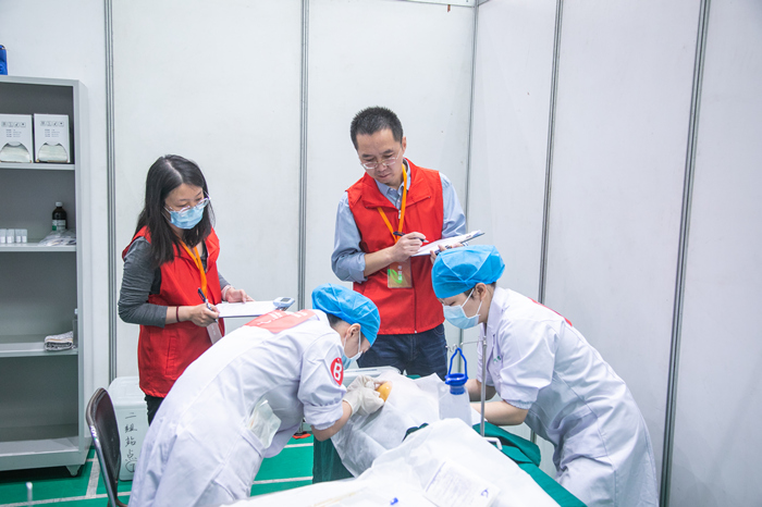 本届竞赛延续中国大学生医学技术技能大赛临床医学五年制赛道竞赛赛程设计,分为初赛和决赛两个部分。初赛为站点式,共设8个站点;决赛为赛道式,分设4个赛道,考核内容涵盖病史采集(英文)、体格检查、外科基本操作技术、包扎术、成人骨穿、心电图相关技能、诊刮术、小儿腰椎穿刺术、新生儿窒息复苏、应急救护等临床医学专业基本理论、基本知识和基本技能,全面还原了临床诊疗真实场景,充分考核了参赛选手的人文关怀、临床思维、临床技能、团队合作、医患沟通、临床应急应变等综合能力。
