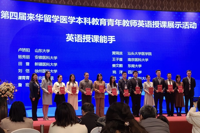 11月7日至9日,第四届来华留学医学本科教育青年教师英语授课展示活动在哈尔滨举行,教育部国际司和中国教育国际交流协会有关领导,以及从事来华医学留学英语授课的教师和管理人员约300多名代表到场观摩。我校校赛第一名、第一附属医院麻醉学教研室杨秀丽代表学校参赛,获得“英语授课能手”称号。