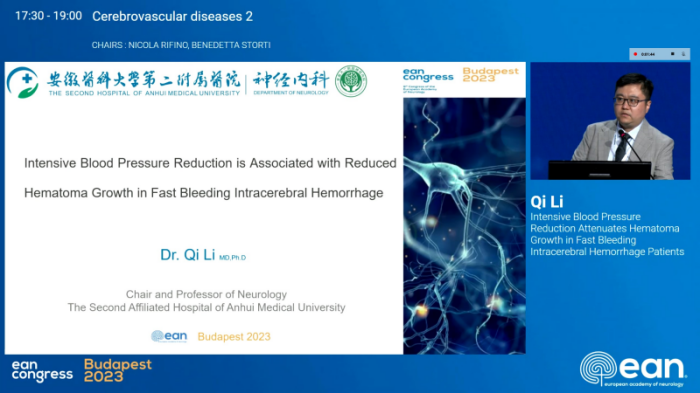 作为发起人,李琦联合哈佛大学、耶鲁大学等国际高等学府专家开展了该项研究,并受邀在2023年欧洲神经病学会大会主会场作专题报告介绍该研究成果。本次研究结果是其在脑出血领域的再次突破,为脑出血有效治疗找到了“靶向人群”。