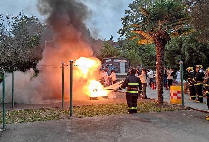 保卫处消防科负责人以“天津港”事件为切入点,结合实验室实际情况,多角度全方位为同学们讲解了消防安全知识。同时,以“一提、二拔、三握、四压”的口诀,就干粉灭火器的使用进行了现场演示操作。师生代表踊跃参与,并在学校消防站消防员的指导下使用灭火器扑灭模拟火情,将理论和实践相结合,掌握了灭火要领。