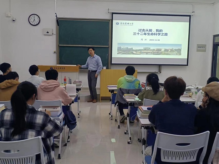 11月8日,生命科学学院举办本科生“优才计划”创新创业培育专题讲座。首场讲座由该院院长周洪主讲,2022级本科生“优才计划”的全体同学聆听讲座。