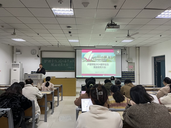 11月15日晚,护理学院以线上线下结合方式,召开2024届本科及研究生毕业生就业动员大会。该院党委书记薛磊出席会议并作动员讲话,院党委副书记、纪委书记王磊主持会议。