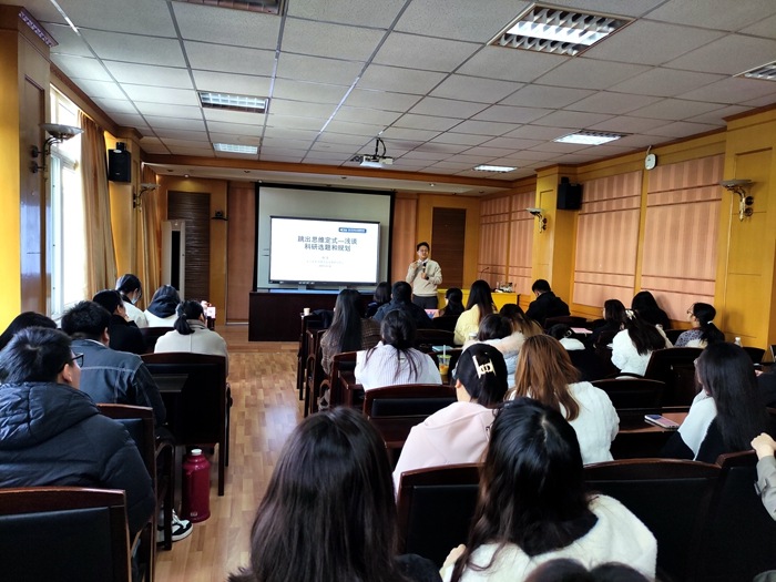李莉作题为《基于全链条管理的医养结合服务高质量发展困境及提升策略研究》的学术报告,从医养结合高质量发展的政策目标、内涵、现状及困境等方面作了介绍,提出了加强政策规划与标准指引、完善制度保障和资源保障的等策略建议。姚尧以《跳出思维定式——浅谈科研规划与选题》为题,结合个人研究经验,从学术研究的选题、研究路径等方面作了细致讲解,为同学们进一步做好科研规划提供了思路。