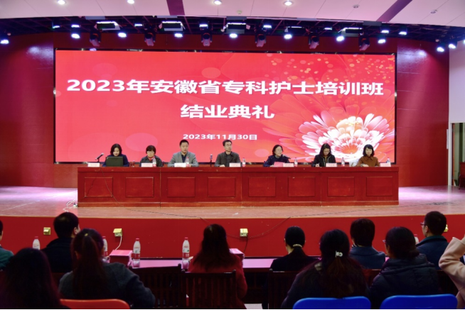 11月30日上午,由安徽省卫生健康委、省护理学会主办,我校护理学院协办的安徽省第十三期专科护士培训班顺利结束,结业典礼在我校南校区举行。省卫健委医政医管处主任科员胡声锁,省护理学会理事长武义华、副理事长张建凤、副理事长兼秘书长李志菊,我校护理学院党委书记薛磊、院长洪静芳出席典礼。