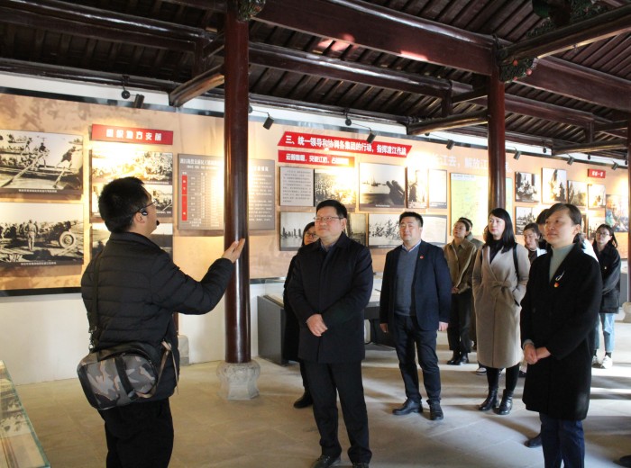 渡江战役总前委旧址纪念馆是全国爱国主义教育示范基地、国家国防教育示范基地。全体党员在总前委旧址纪念馆放映厅观看渡江战役专题宣传教育片,并参观总前委旧址、中共中央华东局旧址等展厅,通过回顾渡江战役恢弘壮阔的场景,缅怀老一辈革命先烈的丰功伟业。