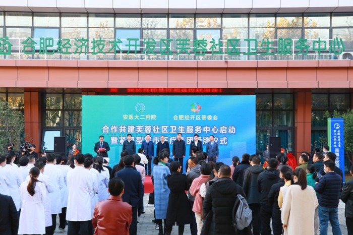 12月8日上午,我校第二附属医院与合肥经开区管委会合作共建芙蓉社区卫生服务中心启动暨紧密型城市医疗集团揭牌仪式在芙蓉社区卫生服务中心新址隆重举行。经开区党工委书记、管委会主任秦远望,市卫健委党委书记、主任张晓峰,市医保局党组书记、局长唐世金,经开区党工委委员、管委会副主任刘声,我校第二附属医院党委书记周典,院党委副书记、执行院长田仰华,院总会计师刘静等出席活动,副院长赵卉主持揭牌仪式。