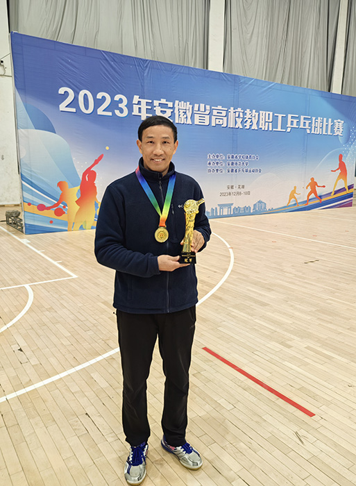 12月9日至10日,2023年安徽省高校教职工乒乓球比赛在安徽师范大学花津校区隆重举行。校党委书记顾家山带队,我校教职工乒乓球队参加比赛。经过两天的激烈角逐,副校长徐朝阳荣获单打冠军,我校代表队荣获团体冠军及“体育道德风尚奖”荣誉称号。