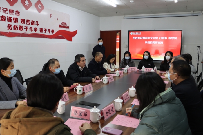 1月2日上午,香港中文大学(深圳)医学院副院长谭兆祥一行来我校,就我校实验教学中心、急救教育基地、人体科学馆以及信息化建设等方面的工作经验进行考察学习。副校长吕雄文会见来访人员并座谈交流。